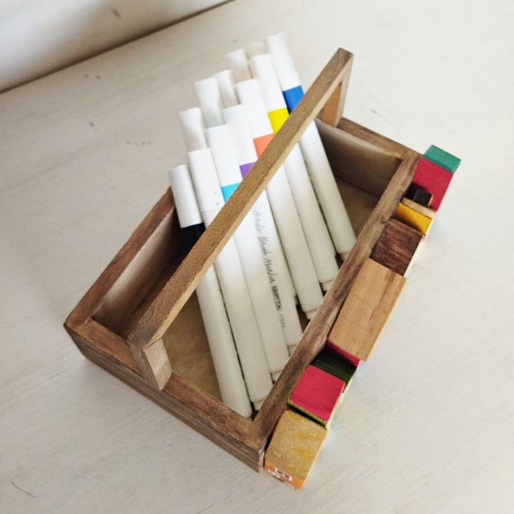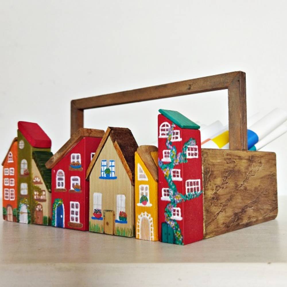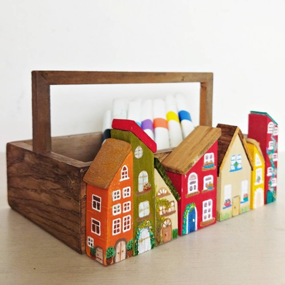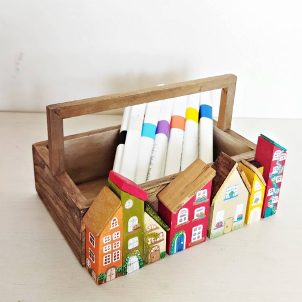 Ağaç Evli Ahşap Sepet. Görseldeki kalemler fiyata dahil değildir.