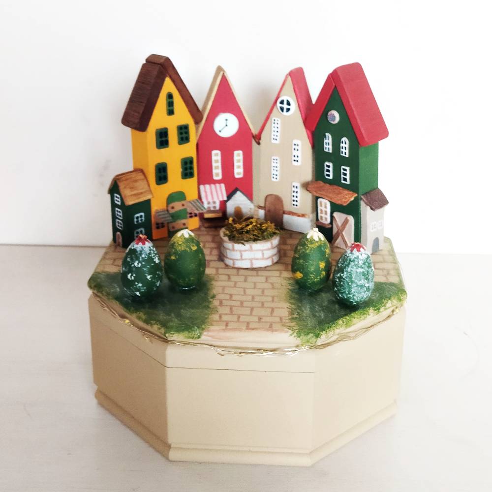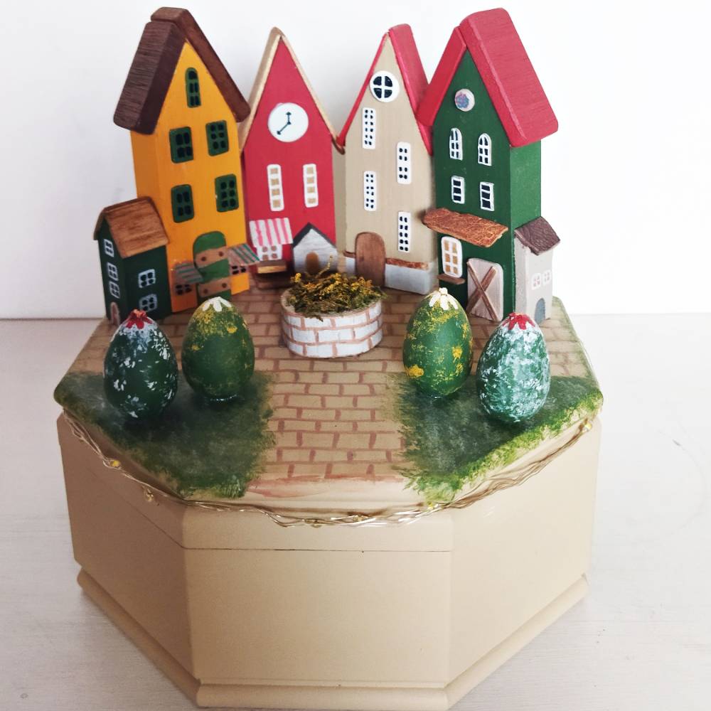 Ağaç Evli Işıklı Kutu.. el yapımı ahşap..
