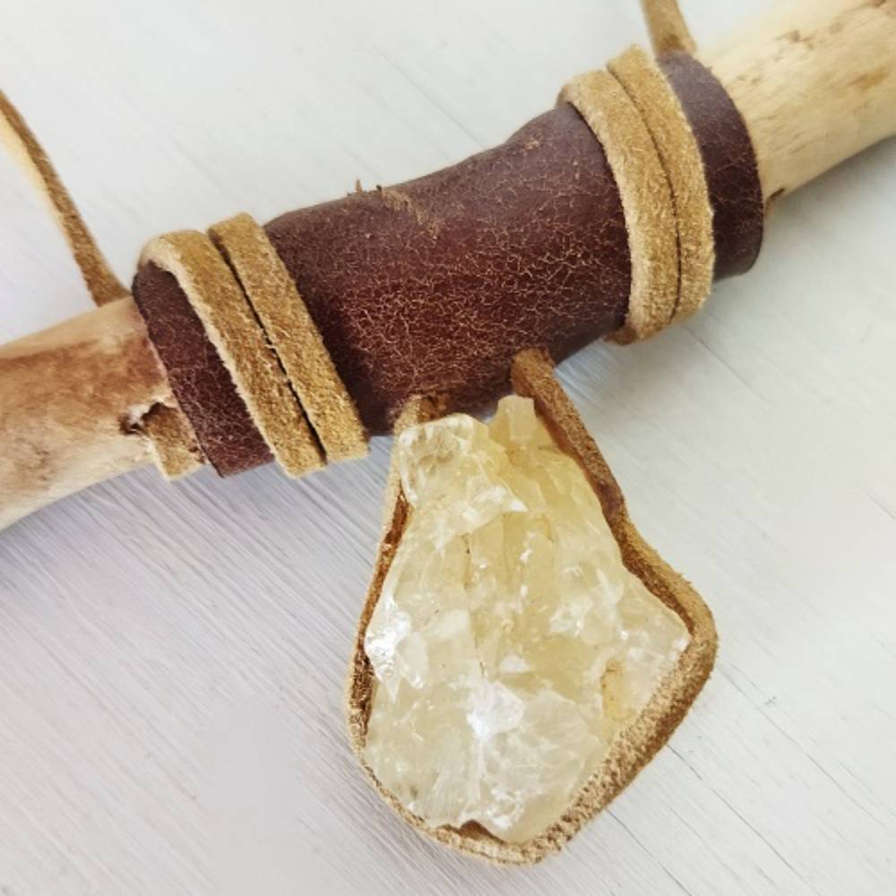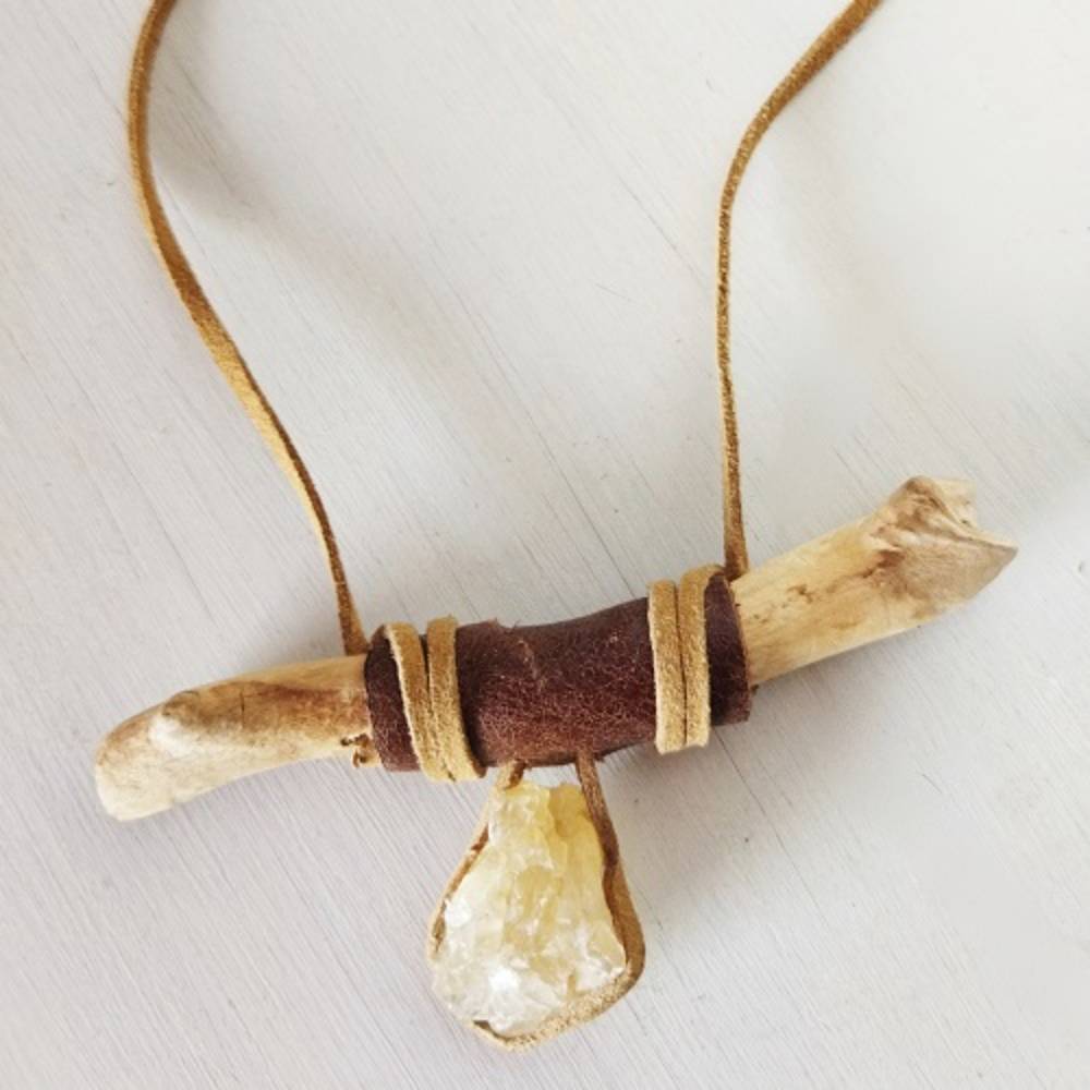 Driftwood Kolye Doğal Ağaç & Kuvars & Deri Kolye.. her parçası elde hazırlanmıştır