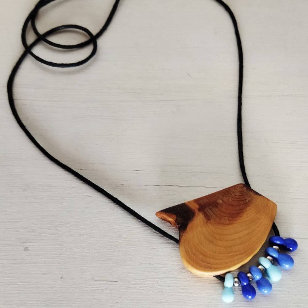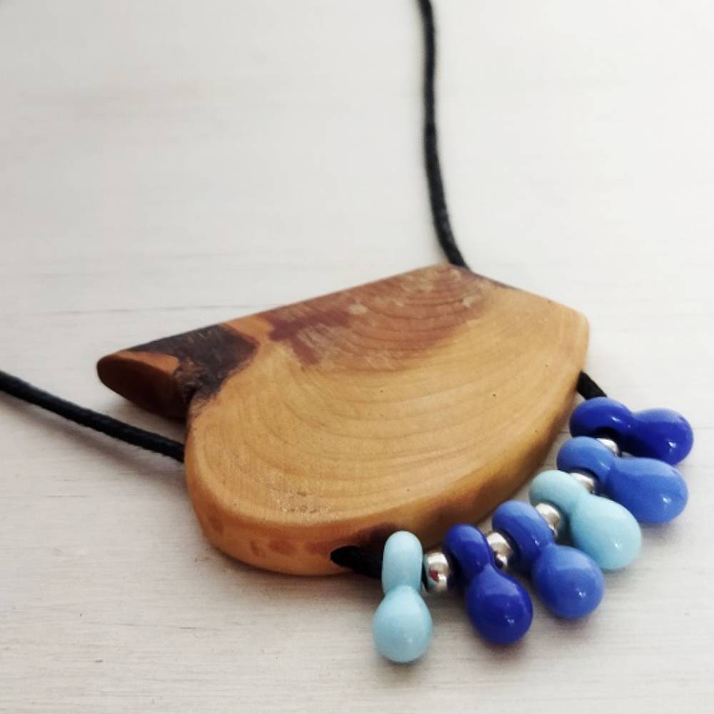 Sedir Ağacı & Cam Boncuk Kolye .. doğal ağaç ve cam boncuklar ile her parçası elde hazırlanmıştır