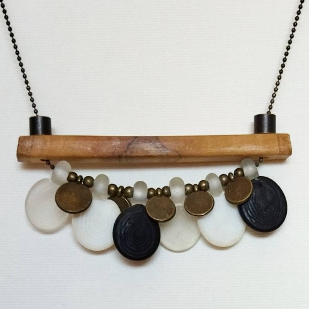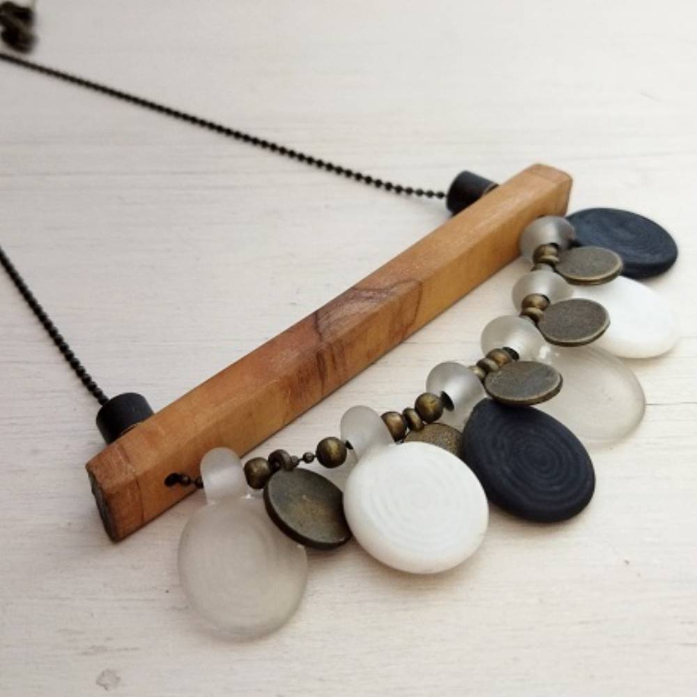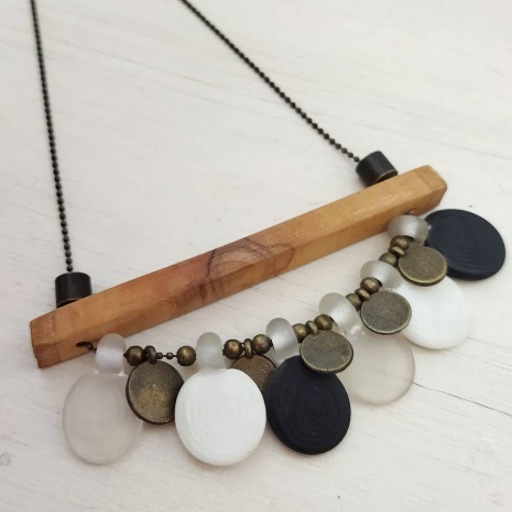 Zeytin Ağacı & Cam Boncuk Kolye .. doğal ağaç ve cam boncuklar ile her parçası elde hazırlanmıştır