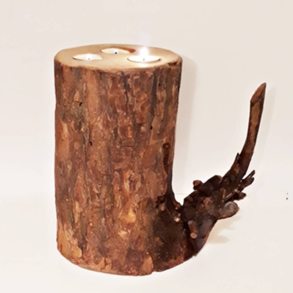 Doğal Ağaç Füzyon Cam Mumluk K2377