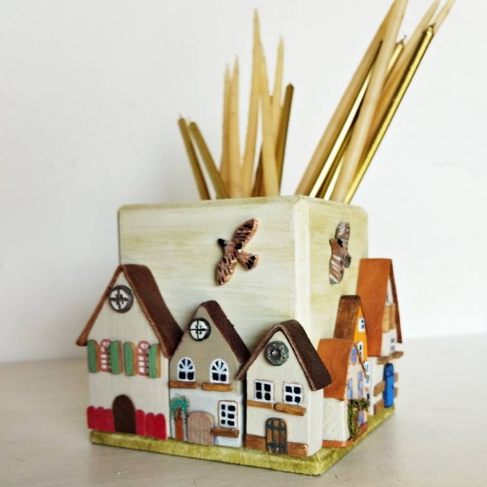 El yapımı.. Ağaç Evli Kalemlik Saksı