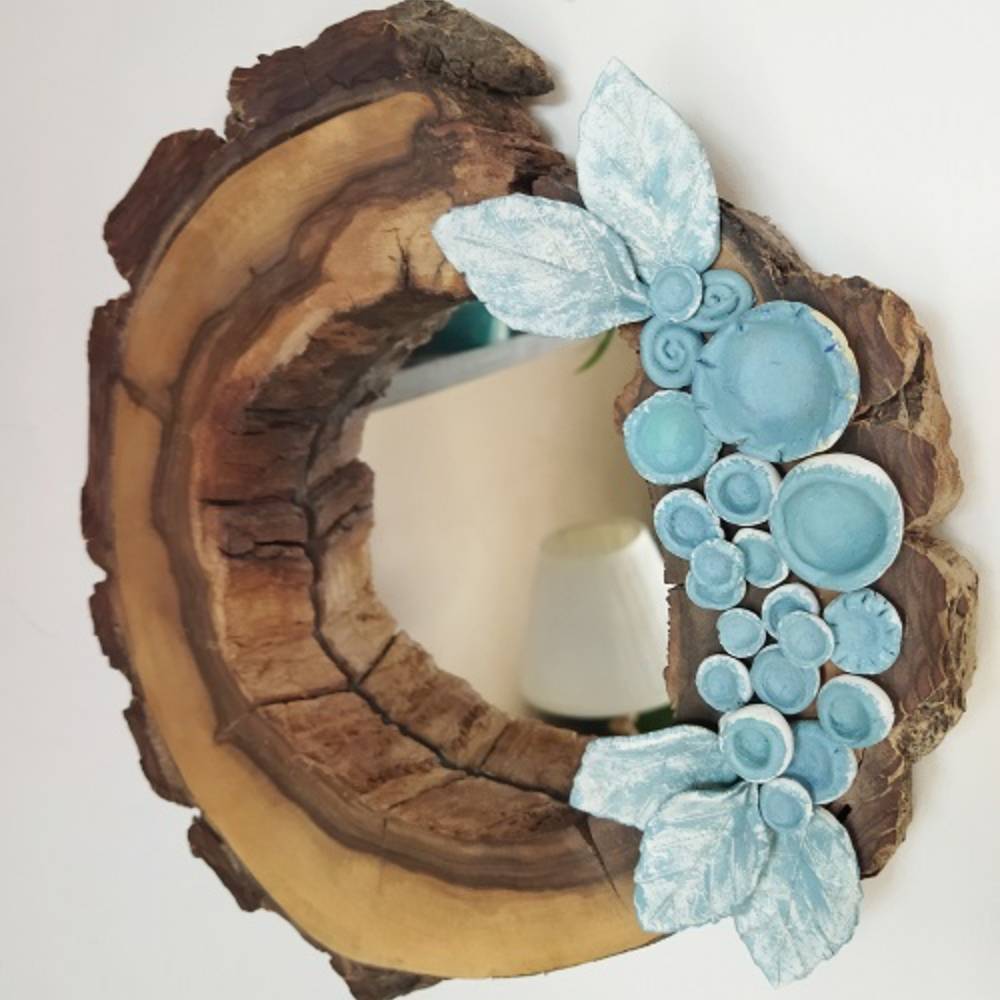 Ceviz Ağacı Duvar Aynası. Ağacın bakımı yapılmıştır. Üst yüzeyde özel mobilya yağı kullanılmıştır. Soğuk seramik yapraklarla detaylandırılmıştır. Tamamı el yapımıdır.