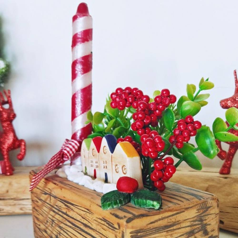 Seramik Evli Doğal Ağaç Mumluk